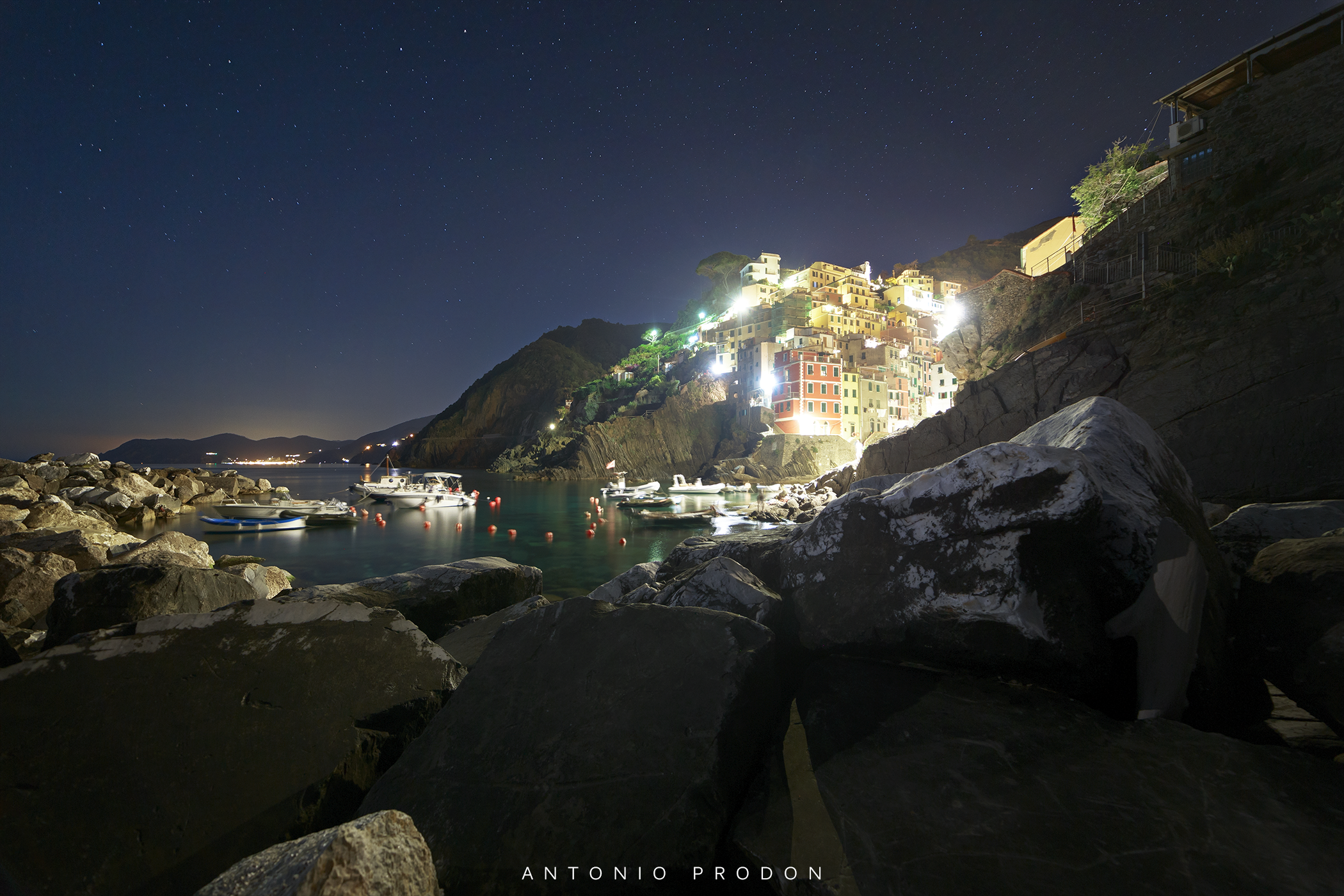 Felicissimo di quello che quella notte era riuscita a regalarmi non faccio altro che voltarmi per ammirare la città di Riomaggiore in notturna… ed ovviamente mi son portato a casa il terzo ed ultimo scatto di questa due giorni alle Cinque Terre in Liguria.