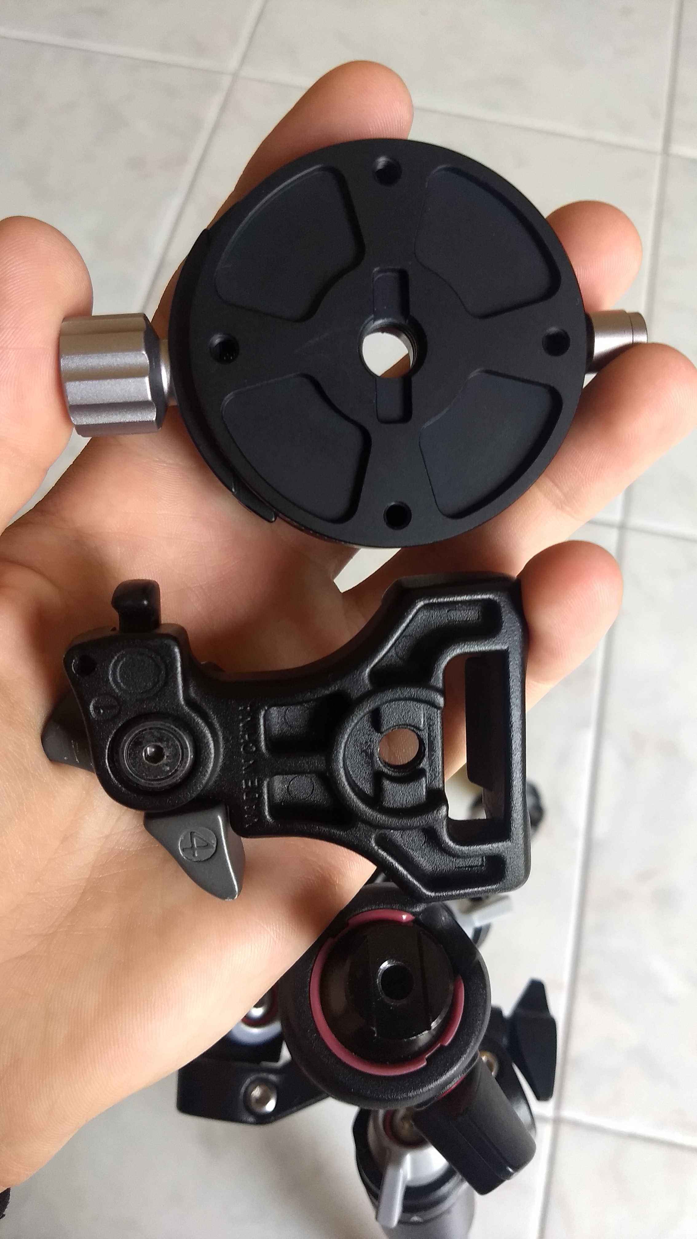 Smontando l’aggancio Manfrotto RC2 dalla testa a sfera, ho notato che le scanalature della testa a sfera e del mio nuovo Quick Lock non corrispondevano.