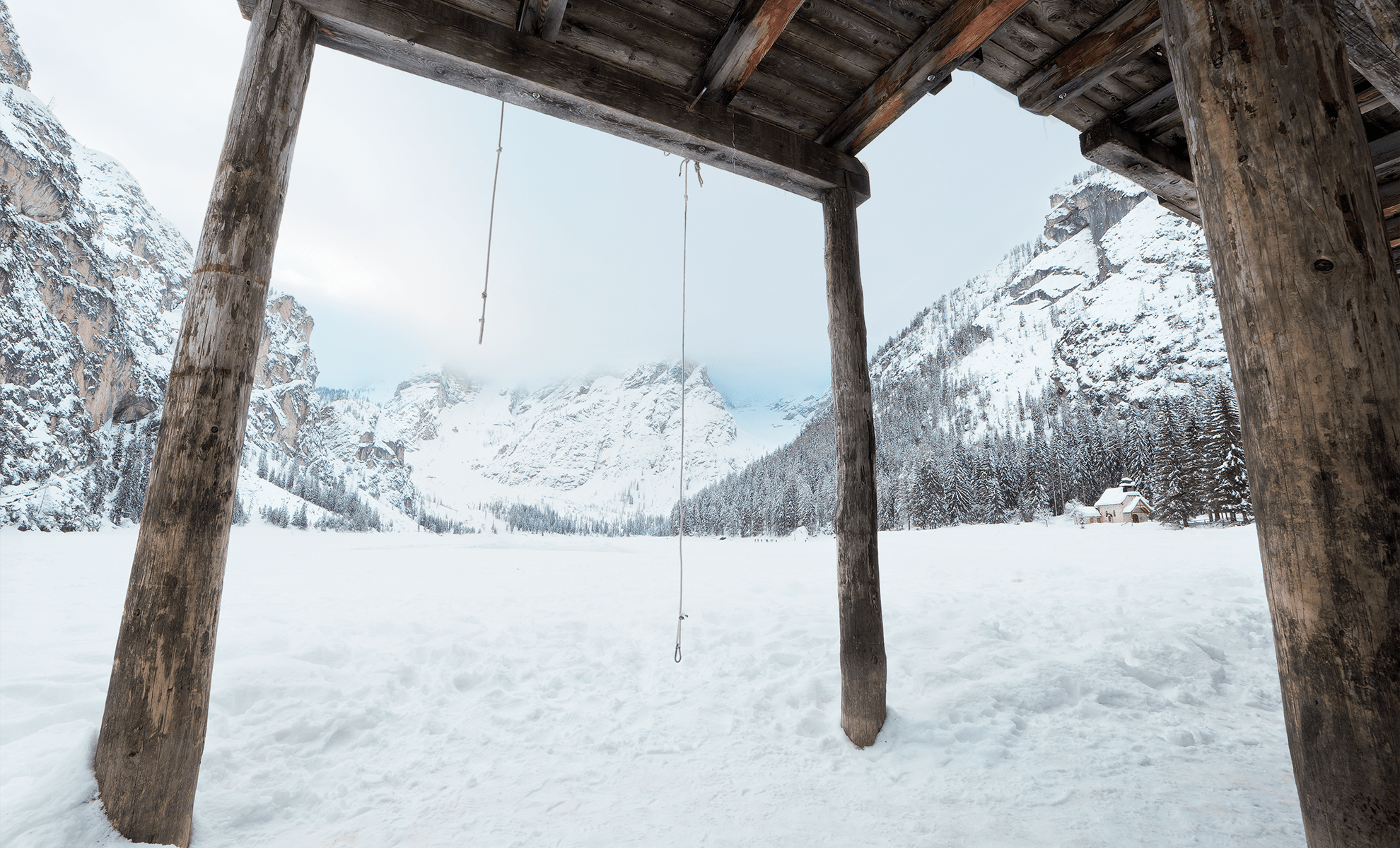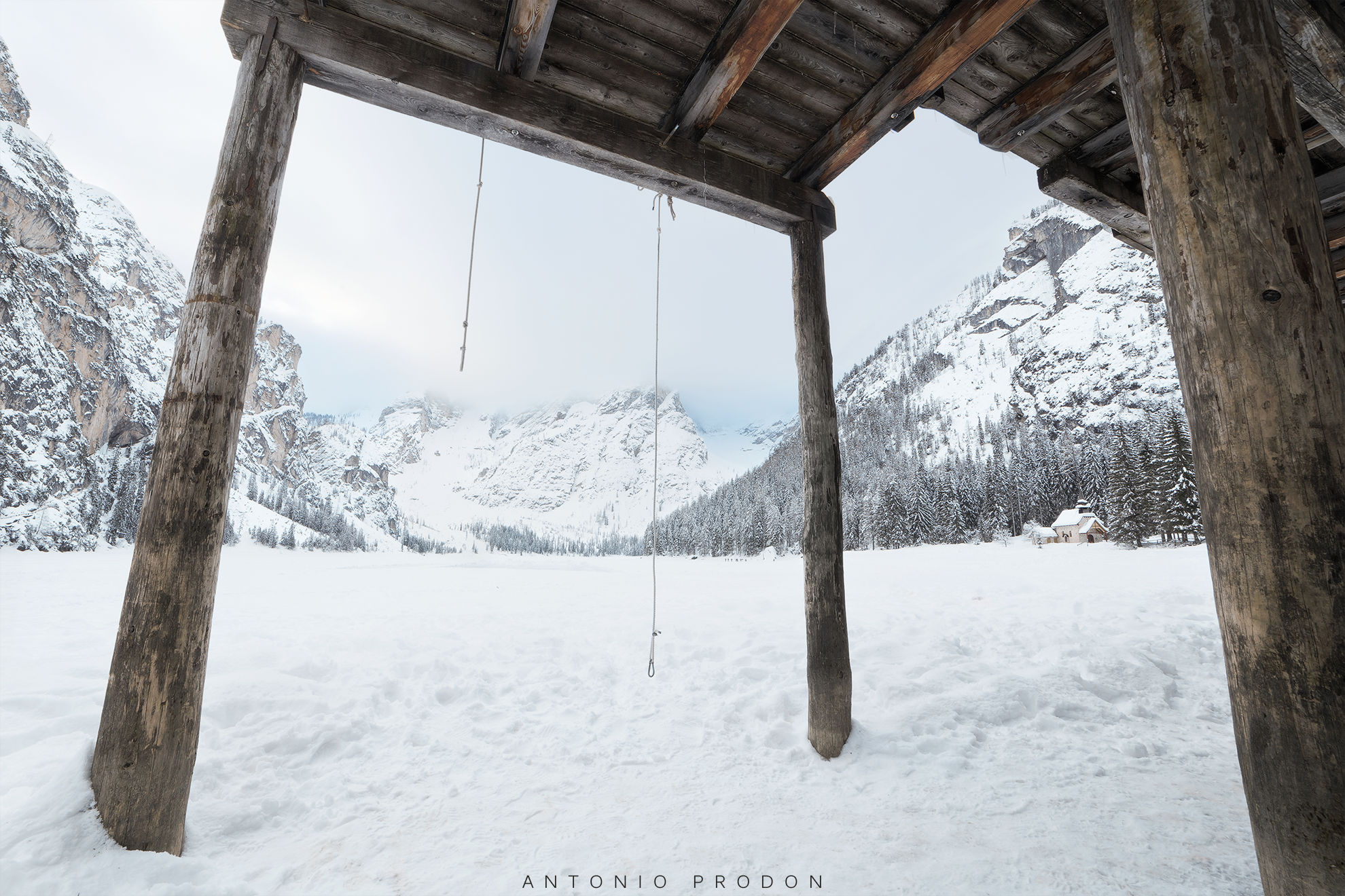 Se vi state chiedendo dove sia il lago… bhè… l’acqua è sotto lo strato di neve e ghiaccio! Difatti in inverno la superficie del lago di Braies ghiaccia permettendo agli sciatori ed ai pattinatori di ghiaccio di poter attraversare la valle direttamente sul lago.