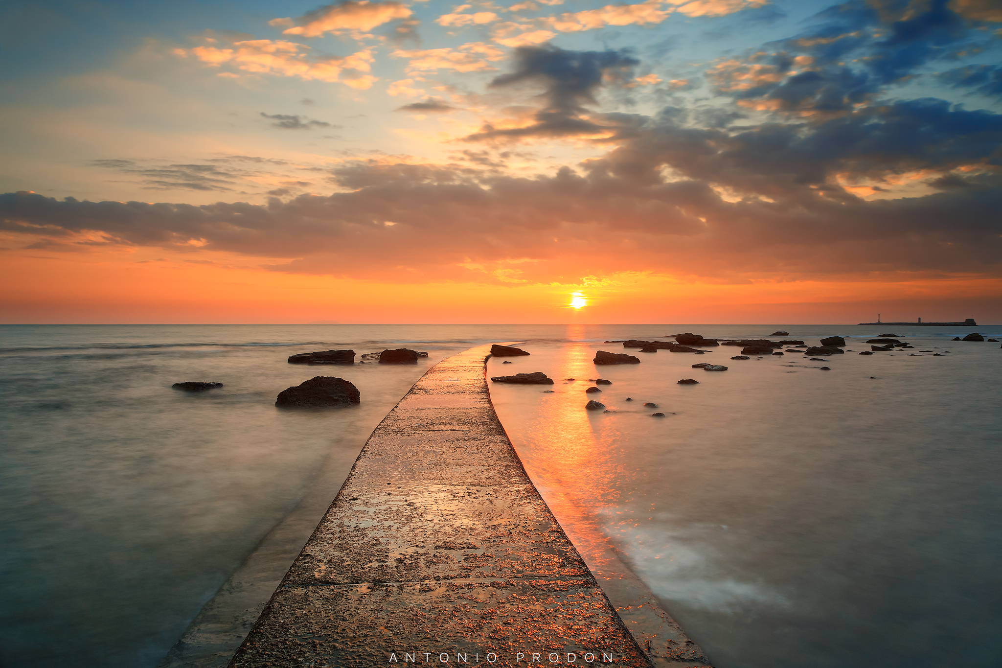Per la prima volta siamo stati nella città di Livorno dove, oltre alla visita ai bastioni Medicei, siamo andati sulla famosa Terrazza Mascagni, famosa per la sua immensa pavimentazione a scacchiera che conta 34800 mattonelle bianche e nere ed una balaustra con 4100 colonnine; personalmente, però, sono stato catturato dalla passerella che si estende verso il largo del mare che è diventato il soggetto della mia fotografia insieme al suggestivo tramonto che colorava le nuvole da poco formatesi.